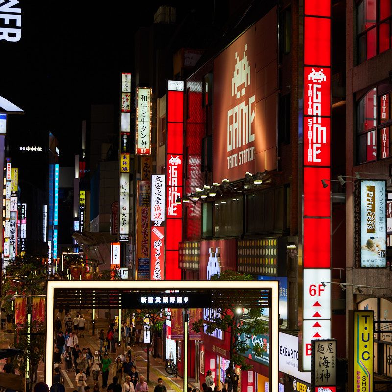 And a new light show they started since I was here last: projecting little stories onto the Shinjuku Metropolitan Building. Starting off strong with Godzilla!