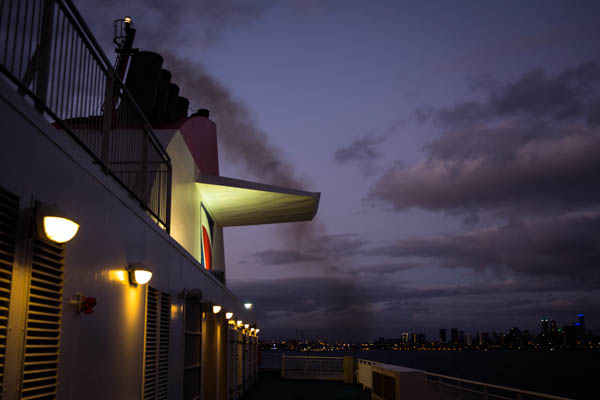 Getting onto our boat proved interesting though. A low bridge randomly placed on the way provided an interesting obstacle when the detour signs stopped halfway through the detour. And once we got close, we got to start queueing in the queue on the road so that we could queue in the queue on the pier for getting onto the boat. Considering how many ants overtook us on the road, it was surprisingly swift once we got through quarantine. Already holding our ticket after seeing our number plate approaching, directed straight onto the boat. And in the time it took us to drop off our things in our room and get to the viewing platform, the boat was just about to weighing anchor, a good half hour before scheduled departure.