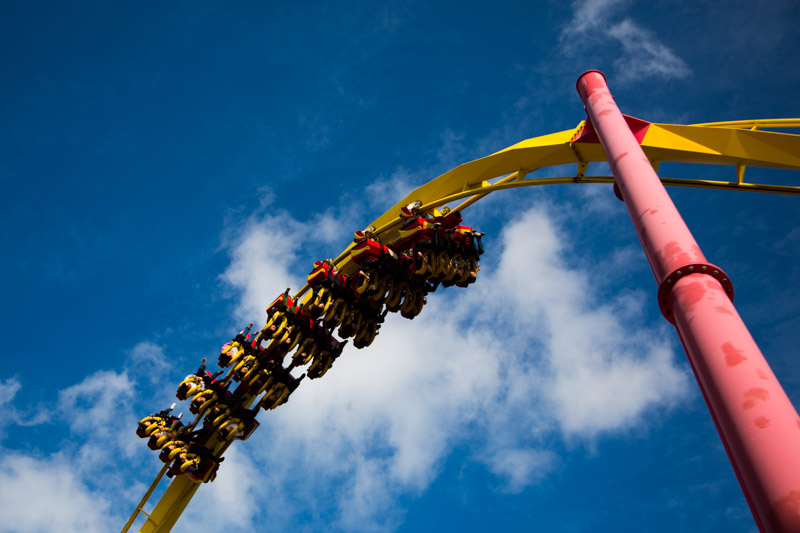 But talking about motion sickness inducing busses, Hong Kong has a huge theme park. I’m used to having cable cars to get to the top of a mountain, not to the next section of the theme park. It being a Monday, the queues don’t seem to have been anywhere near as long as they seemed to be prepared for, but sadly it also wasn’t like we could just walk into anything. Alone the cable car took half an hour, and a lot of self-control as the Chinese don’t appear to have worked out what a queue is, and how it works. There was however a roller coaster that even I made it on, without having to be carried out afterwards.