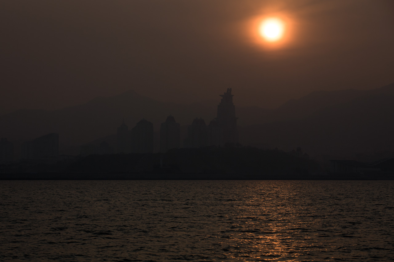 The visibility didn't improve much from yesterday, but at least we got a nice measure today. Which was: when we were between Weihai and the island, we were able to barely make out some outlines of both the island and Weihai. Looking at my maps, the distance is about 4km in total, making about 2km visibility of where you could see something.