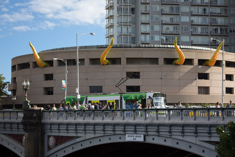 Having previously lived in a European city that had trams, I tend to get fairly nostalgic about trams seeing trams. The smooth gliding combined with the rough sounds between different rail sections. Even the sound of tires going orthogonal over the track. But what struck me for a second was when I looked at one of the trams moving off, I was suddenly very confused as to what it was doing driving on the left hand side.