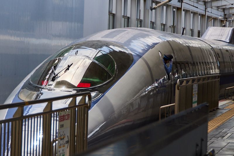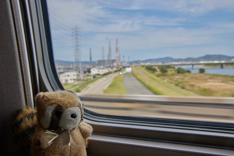 Today's perfectly normal purple colored 500 Shinksansen takes us to Okayama, a township with at least one skyscraper (quite a few in fact).