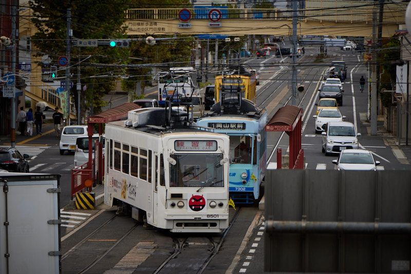 Okayama also has street cars! And they have to be the funkiest railed transportation method I have ever used in Japan. The acceleration was provided by a motor from the 19th century that was both very slow to respond and very harsh when it did. The brakes looked like they needed to be hand pumped by the driver to operate. The pot holes in the rails were rivaling those of Australia, sending us swinging all over the rail. Not that it mattered at the whooping 30km/h that we managed to reach on the high speed section. And you could feel every single one.