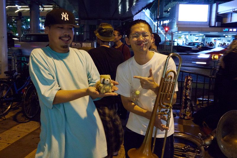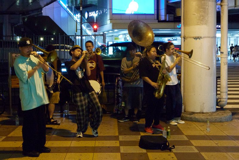 Exploring the night life of Ōsaka has taught me about the existence of a new instrument: the Sousaphone. And then I ran into two more, at various other stations in the city.