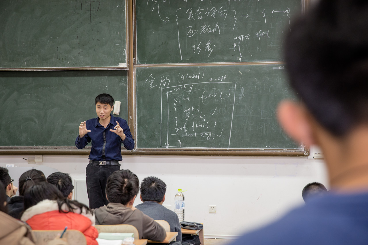 Well, today we discovered that this wasn't actually true. We managed to get ourselves into a C Programming Lecture, which we enjoyed as a proper student, wooden seats and all. We may not have understood the Chinese, but the lecture looked very well done, teaching C code completely without slides but interactively and on a black board. And he did also manage to teach with people responding, occasionally in a chorus similar to the way primary school kids greet their teacher after 'Good morning Class'. Maybe the university should be sending people to Weihai to learn C as opposed to grabbing students from Weihai and teaching them Java.