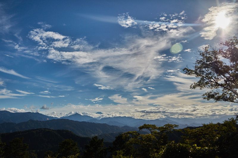 The advantage of the path having had all the folliage get overgrown is that the path was correspondingly well shaded. A welcome fact when you consider the roughly 500m worth of ascent that I apparently went through trying to get to the top. What was slightly less welcome was some of the wildlife information signs that you saw along the path. Completely in Japanese, but just enough comprehensible to produce serious concern. Like having pictures of three different wasps, with the sizes in mm going up to 35mm. Or a bunch of snakes and some diagrams of fangs. Presumably telling you how to identify the different poisenous snakes and whether to run for the hospital or ask you to just curl up in the shrubbery somewhere because you're not going to make it anyway and they'd like to avoid the paperwork.
