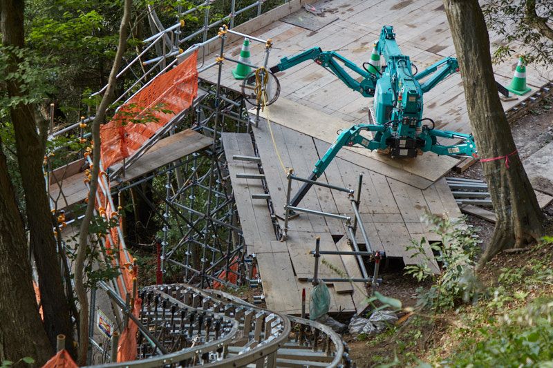 I definitely came on an off day though. The place is equipped for so much more than the handful of people that I shared the trail with. There was a cable car and chair lift (with only the former running). Halfway down there was a whole village of temples, gates, wishing walls, and generally enough shops to keep an army of tourists at bay, all with their shutters firmly shut. Though they do appear to be building a roller coaster past a four-legged mechanical spider monster? I'm not too sure I'd take that roller coaster ...