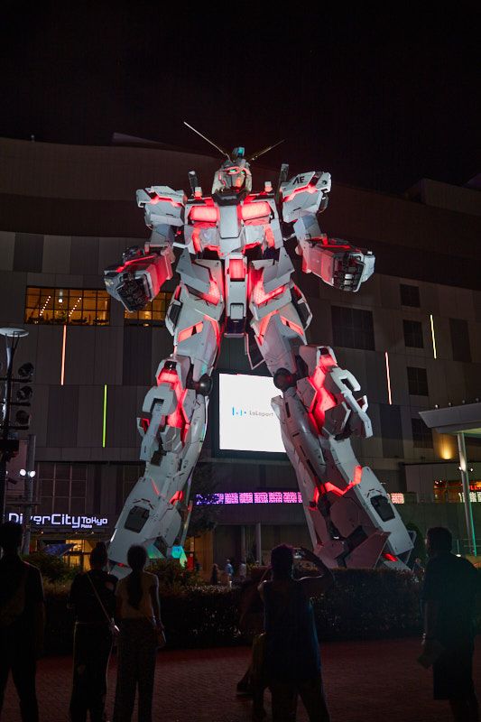 The Gundem robot is an interesting example of how the years have passed since I've been coming to Tokyo. When I first arrived many years ago (long before this blog started), it was a rather static figure which I think could huff occasionally but was otherwise just a rather large static statue. Since then, it has gained more and more movements, as well as exterior and interior lights which it uses to put on a show (unfortunately I only saw it from a distance today).