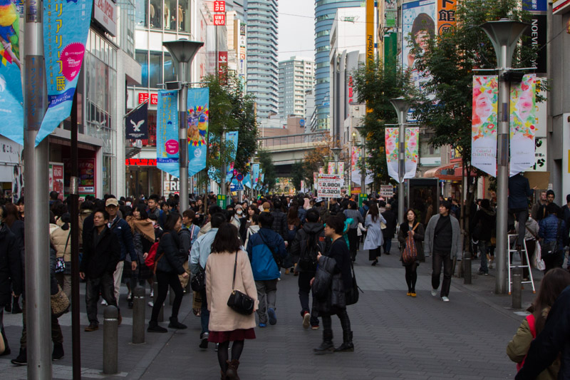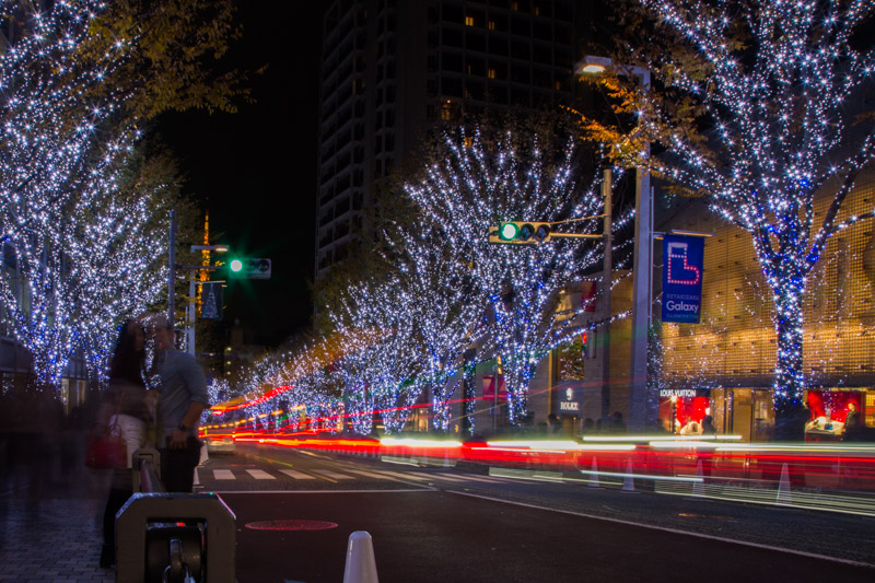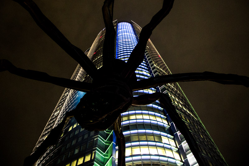 It’s surprising how popular Roppongi Hills is still during this time of year. We were thinking of going up the observatory, but after seeing the queues which were buying tickets, we somewhat changed our minds and decided that it’s far nicer from the ground. Plus the building itself is illuminated in such a way that you do need to see it from the outside. Even if you have to look through the legs of the migrating arachnids.